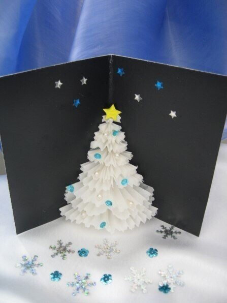 Как сделать новогоднюю 3D открытку елочку из бумаги своими руками