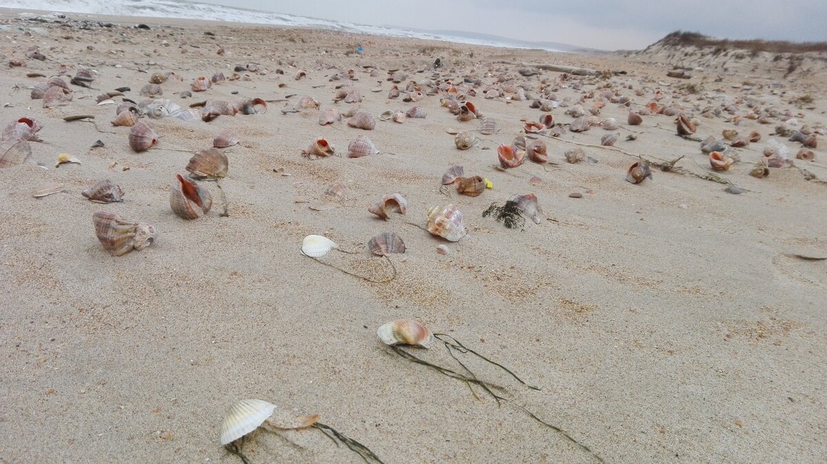 Тут часто штормит и волны выбрасывают на пустынные пляжи миллионы ракушек. Ветер легко меняет черту берега, обрушая в море тонны земли. Почти полное безлюдье, хотя и встречаются гуляющие, пикникующие и даже купающиеся. Подвозил на машине второго января даму пенсионного возраста, которая купалась в море. Температура воды порядка 11 градусов, не сказать, что сильно холодно. Дама сказала, что купаясь в зимнем море она очищает душу и становится близка к Богу. И так она уже якобы делает последние 20 лет - купается в Новогодние праздники. "Я хотела вчера, 1 января, но был сильный ветер от берега, испугалась, что в море унесет". - сказала она мне. Шторм в январе великолепен, если, конечно, стоять на твердой земле в теплой куртке и любоваться этим зрелищем в относительной безопасности. Почему в относительной? Ну, ветер настолько силен, что сбивает с ног, а кроме того он (ветер) может неожиданно из за кургана вынести прямо в голову наблюдателю какой-нибудь мусор. Его море выносит в шторма н