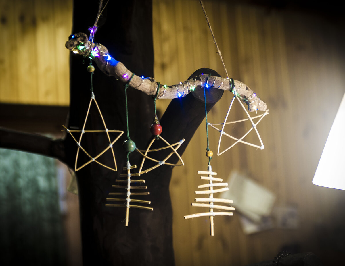 Мы с сыном продолжаем лесную тему в HandMade. Из хвои - вязали, шишки - белили, ловец снов лесной - сделали. Теперь душа просит праздника. Коряжка интересная из леса принесена давно, пришел ее час. Ивовые веточки после подрезки кустов на участке выбрасывать было жалко, поэтому решили сделать из них простенькие фигурки. Лозу помыли, очистили от коры. Фигурка первая - звездочки. Складываем палочку пополам, оба конца так же перегибаем. Готовим еще одну палочку для пятой грани. Можно сразу взять длинную лозу и разделить на пять отрезков одинаковой длины. Заплетаем концы вот таким образом, словно завязывая их узелком. Так звездочка будет намного прочнее. Места перекрещивания можно связать, мы использовали сизаль. Можно и нитками обойтись. Теперь пятую сторону привязываем к свободным концам, заводя палочку крест-на-крест. Опять же - для прочности изделия. Можно при связывании концов капнуть каплю пва, чтоб прочнее держалось. А вот и наши звездочки. Просто и быстро. Можно их и на елку п