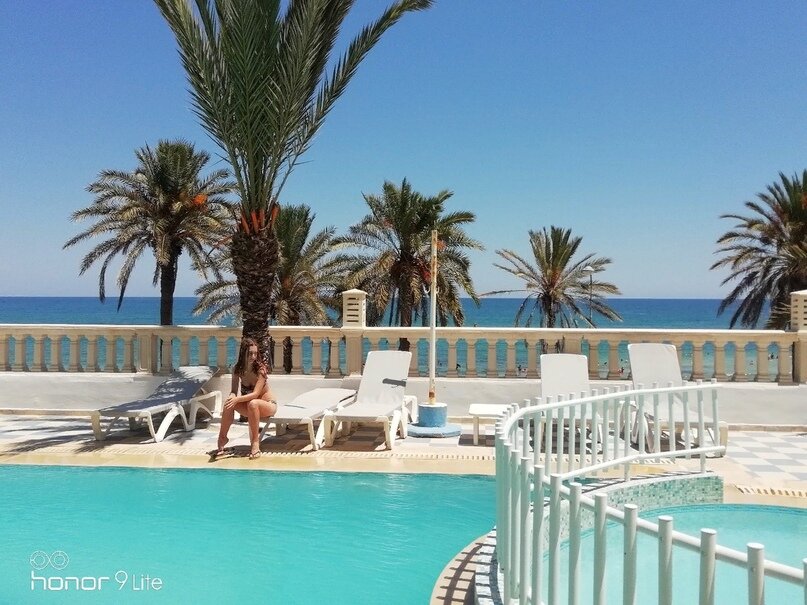 Мы прилетели в Тунис вечером. По дороге к отелю нас не убили, поэтому всё шло хорошо. Нас заселили, и мы побежали на море. Ну сначала, конечно, постояли минутку на нашем балконе, потому что надо проверить, не стоят ли злодеи под окнами. Всё было спокойно, и мы вышли. По дороге Паша услышал, что отменили какую-то морскую прогулку. Странно, но мою боязнь всякого ужасного победило желание поплавать (может, это из-за настроя на экстремальную журналистику), и мы продолжали бежать. Через одну минуту после выхода из отеля мы оказались на море (потому что у нас крутой отель), и увидели жесть – волны были выше гор. Одна волна могла бы докинуть меня до нашего отеля, а Пашу – две волны. И мы как начали там купаться минут 10. Потом я испугалась, что может что-то случиться и заставила нас выходить. Сейчас очень жалею, что мы пропустили такой аттракцион, потому что остальные 6 ночей были, как говорится, тишь и гладь. Вывод: не пропускайте шторм и берите с собой сёрфинг, будет классно.
