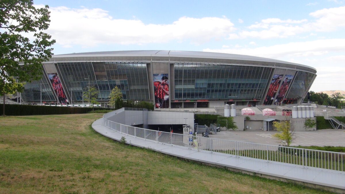 Донбасс арена была возведена в 2009 году может помещать 52 667 зрителей. На возведение потребовалось 400 000 000 долларов США.Возведением занималась компания из Турции Enka.На Донбасс арене проходили матчи футбольного клуба ФК ШАХТЕР. Вокруг стадиона раскинуться прекрасный парк с лавочкам для отдыха,также отличные пешеходные дорожки стадион принимал ЕВРО-2012.Также во время концерта на стадионе выступала узнаваемая певица Бейонсе. После того как на Донбассе начался война стадион прекратил свою работу в стадион было 2 попадания снарядов.К 31 мая 2018 года на стадионе было закончено восстановление газона и стадион поддерживается в удовлетворительном состоянии на нём открыт музей и фан кафе.Когда стадион возобновит работу в полном объеме никто не знает. Донбасс Арена расположена в г.Донецке Донецкой обл.