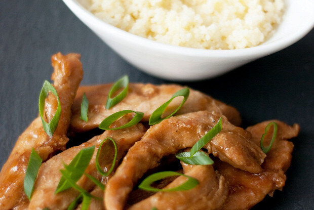 11. Карри - 1 чайная ложка Инструкция приготовления 1. Смешать все ингредиенты для маринада в глубокой миске: соевый соус, тертый имбирь, мелко нарезанный чеснок и карри. Нарезать куриную грудку полосками и выложить в миску с маринадом. Хорошо перемешать руками и отправить в холодильник на полчаса, а лучше на час. 2. Мелко нарезать луковицу и обжарить до мягкости на масле. Добавить замаринованную курицу, соус терияки и тушить около 15 минут на небольшом огне, затем прибавить огонь и жарить 5–7 минут до готовности. 3. Залить кускус 100 мл кипятка, после того, как вода впитается, добавить кусочек сливочного масла и хорошо размешать. 4. Перед подачей можно украсить курицу рубленой зеленью.