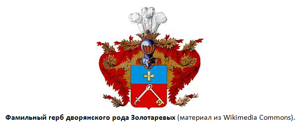 На фамильном гербе дворянского рода Золотаревых в верхней части на голубом фоне изображен золотой крест, а в нижней части на красном фоне изображен серебряный меч, острая кромка которого продета через кольцо золотого ключа (Общий гербовник дворянских родов Российской империи, ч.III). Род Золотаревых внесен в VI часть дворянской родословной книги Пензенской губернии.