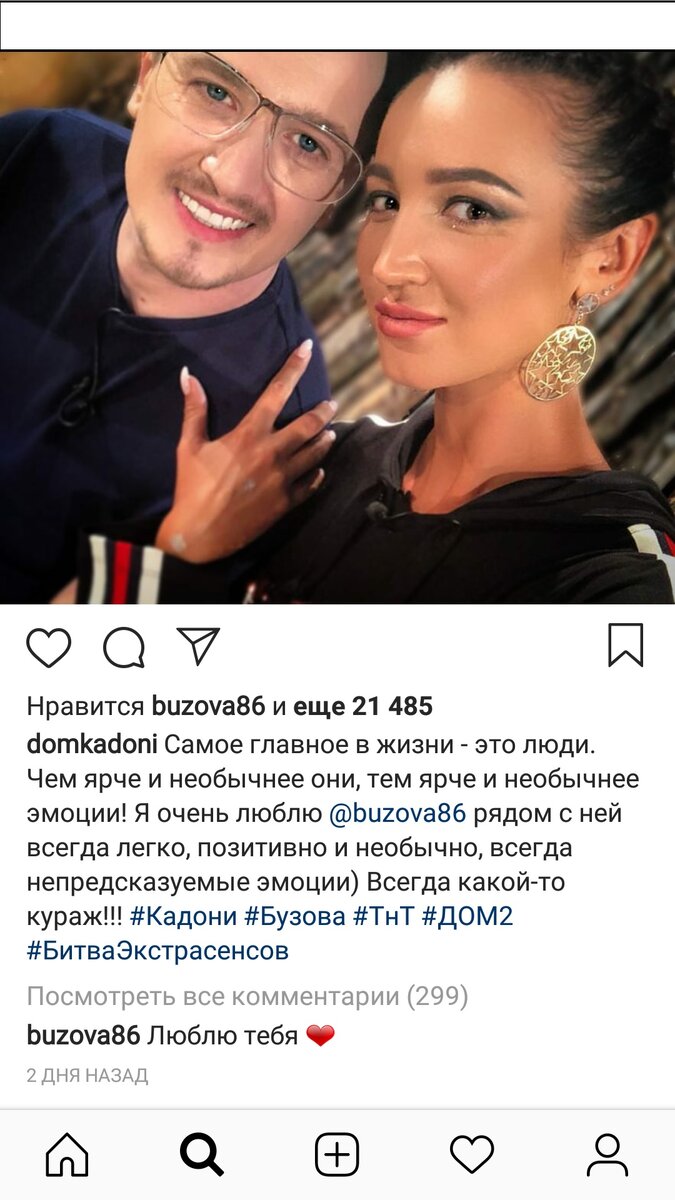 Влад Кадони в своем инстаграм опубликовал фото с Ольгой Бузовой и добавил, что всегда рад находиться рядом с ней. Телеведущая в комментариях написала коллеге "Я люблю тебя!" Влад ответил, что это взаимно.