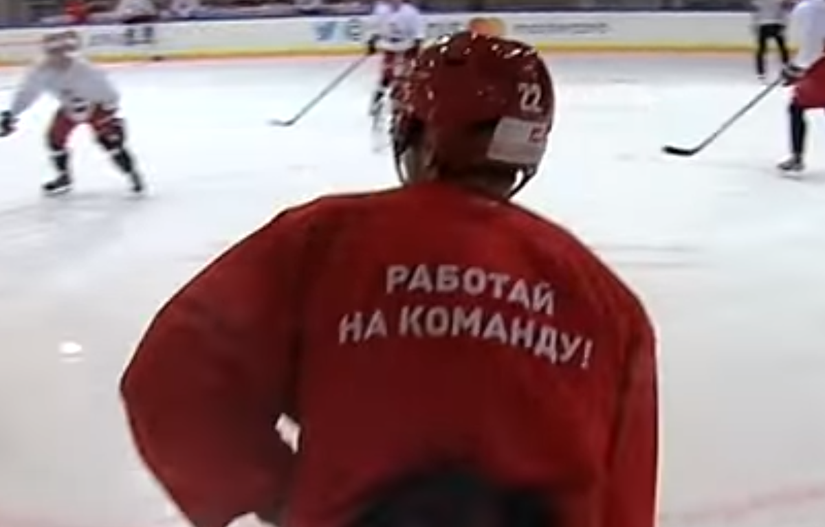 На тренировочную форму «Локомотива» нанесли мотивационные лозунги. «Работай на команду» написано на спинах хоккеистов. Напомним, что ранее игроки занимались в «сетках» разных цветов без дополнительных надписей.