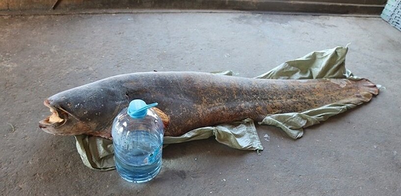 Гигантская рыба попалась в ловушку профессиональных рыбаков.