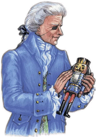 Началось с того, что он дарит ей смешную новогоднюю игрушку — щелкунчика. Мари с первого взгляда так полюбила щелкунчика, что начала его оберегать и защищать от бесцеремонного старшего брата. Следующей ночью девочка становится свидетельницей того, как куклы в гостиной оживают и происходит битва между мышами во главе с мышиным королём и армией игрушек во главе со щелкунчиком. Когда Мари просыпается в жару и рассказывает увиденное родственникам, господин Дроссельмейер рассказывает ей сказочнуюисторию.