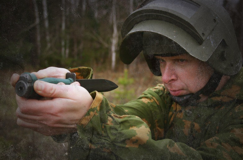 Вооружение для специальных подразделений всегда отличалось от обычного оружия которым комплектуются солдаты регулярной армии. Связано это в первую очередь с спецификой специальных подразделений и разведчиков, которым зачастую ставят довольно сложные задачи, выполнять которые не редко приходится в тылу врага. Именно поэтому такие бойцы должны быть укомплектованы самым лучшим и иногда даже необычным оружием. Сегодня мы поговорим о такой неотъемлемой части экипировки разведчика как нож. Ножи бывают разных типов но сегодня речь пойдет о специальном ноже-пистолете НРС-2 "Взмах". Расшифровывается данное изделие как "Нож Разведчика Специальный" и помимо колющих и режущих свойств ножа, он может еще и бесшумно стрелять. Первый образец данного стреляющего ножа появился в начале 80-ых годов и был разработан под специальный бесшумный патрон 7,62 мм СП-3, но в это же время на Климовском СПЗ был разработан новый бесшумный патрон СП-4 того же калибра но с повышенными характеристиками. В связи с поя