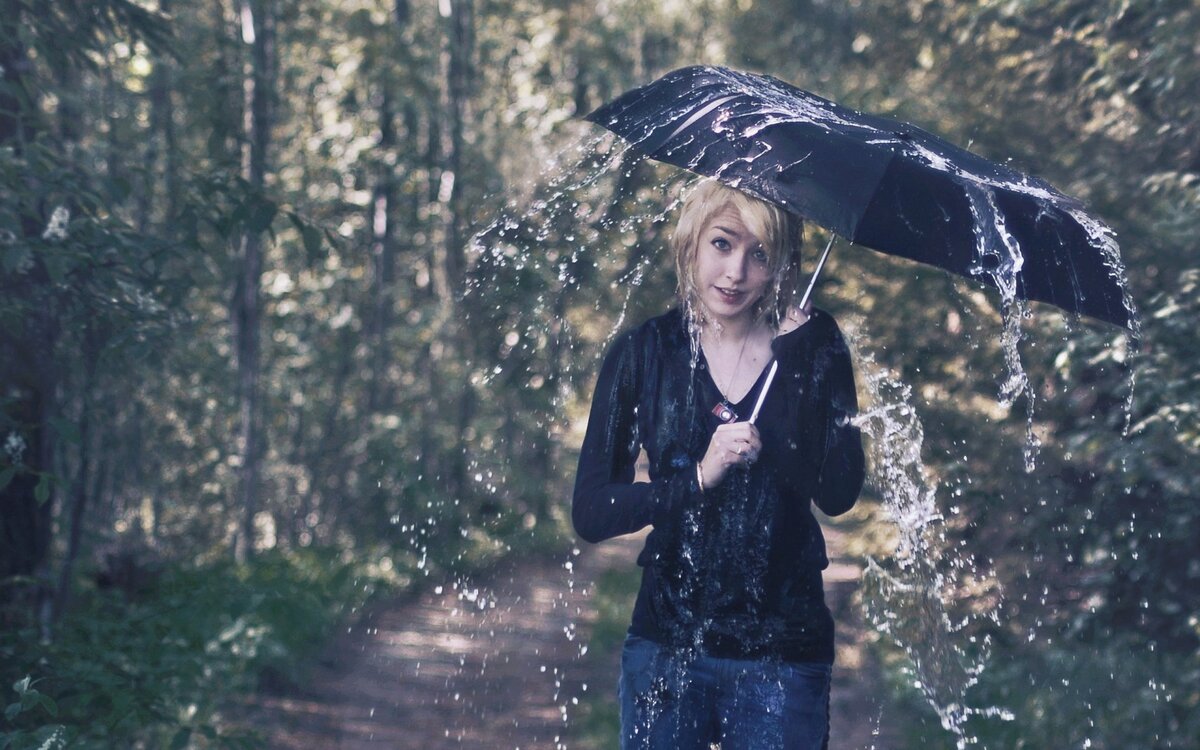 Просто взрослая женщина, наверняка для кого-то самая красивая и лучшая, идет себе под ливнем, наконец-то превратившимся просто в дождь. Идет и улыбается чему-то. Это же здорово, если человек улыбается каким-то мыслям, совершенно не будучи психически неуравновешенным, а просто улыбаясь.