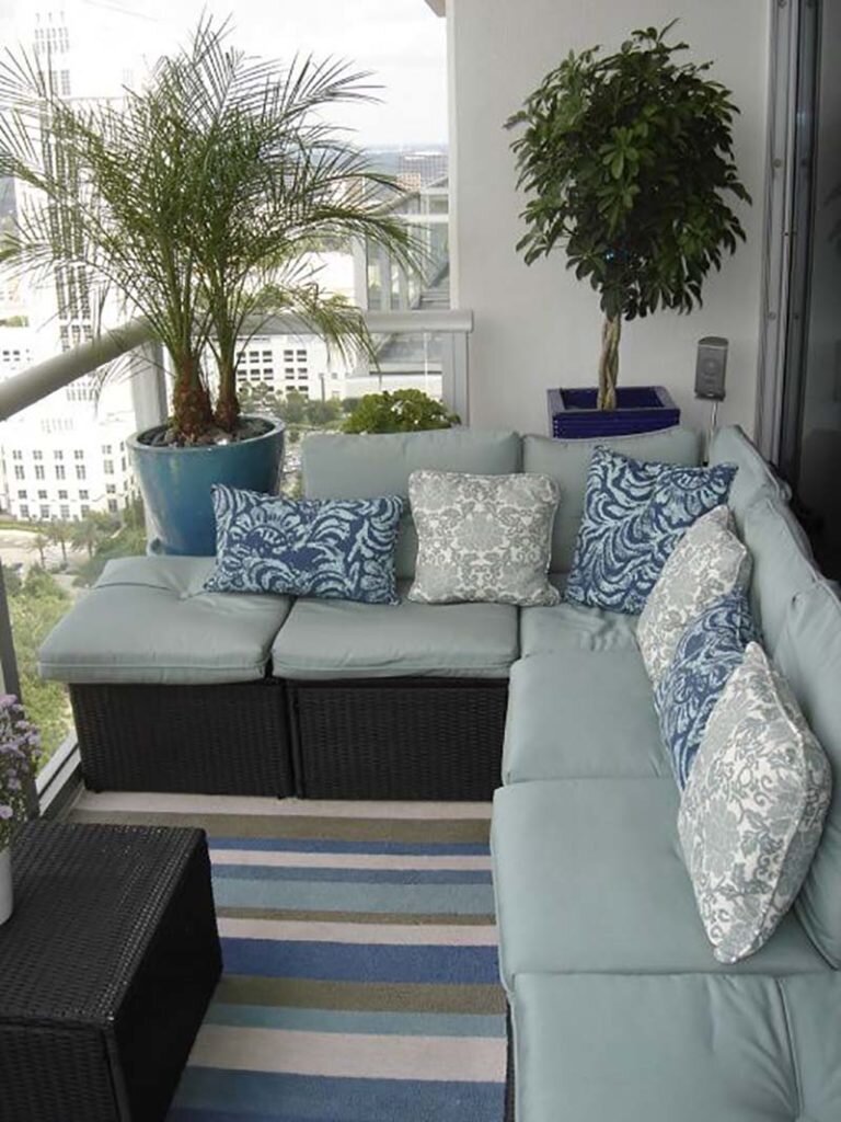 Давно миновали те времена, когда хозяйки малогабаритных квартир использовали балкон в качестве кладовой для хранения лыж или санок, велосипедов и пустых банок. Сейчас уже многие владельцы просторных балконов воспринимают их, как крохотные миры, небольшие уединенные пространства, которые можно обустроить на свой вкус. К примеру, если поездка на отдых в экзотическую страну вам явно не по карману, почему бы не создать живописный тропический рай на собственном балконе. Крутые идеи по созданию зоны отдыха на балконе 1. Сидя на этом мягком уголке и попивая свежевыжатый сок из ледяного бокала, легко представить себя на морском побережье! 2. Эффектный вариант дизайна с небольшими подвесными стульчиками. Выглядит просто потрясающе! 3. Удачное сочетание белоснежного и бирюзового оттенков позволяет визуально расширять пространство. К тому же бирюзовый цвет напоминает о морской волне. 4. Кованая скамейка, украшенная разноцветными мягкими подушками, букеты цветов, свечи и пледы создают полное ощуще