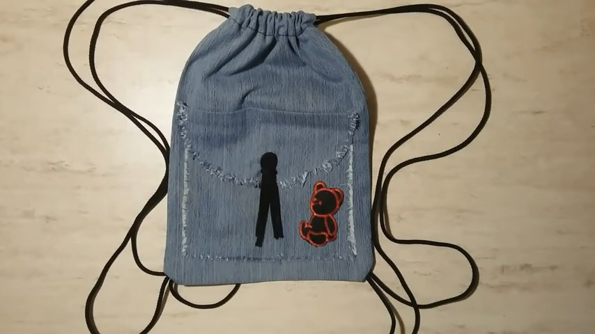 В этом мастер-классе мы расскажем, как сшить рюкзак из старых джинс. Подробная инструкция поможет вам довольно быстро сшить удобный и стильный рюкзачок, который отлично дополнит ваш образ. Что нам потребуется? Как сделать рюкзак? Отрезаем нижнюю часть джинс Распарываем боковые швы Выкраиваем две одинаковые детали Сшиваем три стороны и прострачиваем кулиску (отворот) для шнурка Вдеваем в кулиску два шнурка Отрезаем шнурок нужной длины Концы шнурка вшиваем в уголок Вырезаем кармашек с клапаном И приклеиваем его утюгом на клейкую ленту Приклеиваем термонаклейку И наш мини рюкзак готов!