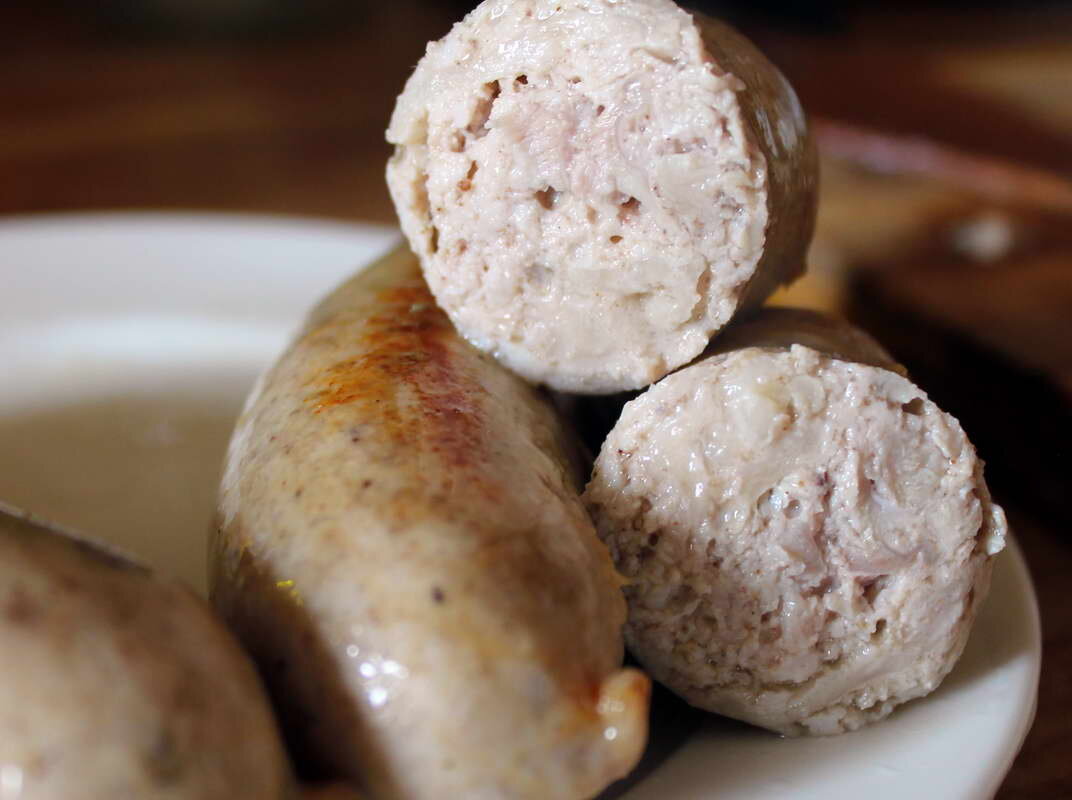 Привет! :) С момента, когда в доме появился шприц для набивки колбасок, рацион значительно преобразился:) Сегодня готовил божественные колбаски, технологию изготовления которых подсмотрел у профи на Ютубе. Рискнул заварить колбаски в двух кипятках и, знаете, это восхитительно! :) Этот способ дает фаршу схватиться, и когда вы будете их жарить на гриле или в духовке, или в сковороде, они не лопнут, и все соки внутри сохранятся. Нам понадобится: 1 кг мяса с окорочков 250-350 мл питьевых сливок 10-20-процентных Оболочка для колбас Для заправки фарша: Соль (немного, чтобы не пересолить), перец (вариативно: кориандр, чеснок, совсем чуть-чуть гвоздики и корицы) Как готовить: Мясо вместе с жиром и шкурами прокрутить через мясорубку или смолоть в блендере в жижу, добавить приправы, 250-350 граммов сливок, интенсивно взбить. Начинить фаршем через колбасный шприц (или насадку) заранее размоченные черева, перекрутить до нужного размера. Теперь залить большим количеством кипятка, накрыть крышко