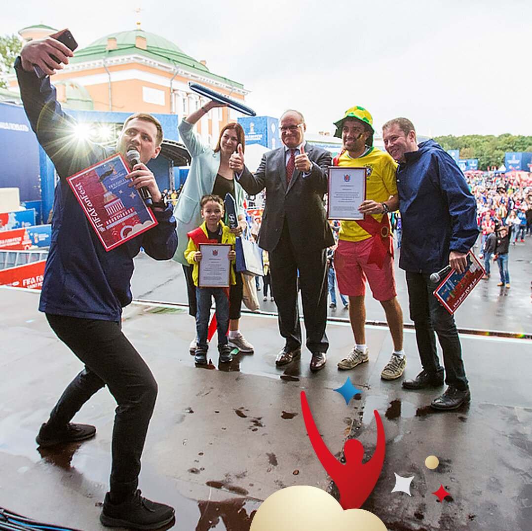 В пятницу, на двадцатый матчевый день турнира, количество поклонников футбола, посетивших с начала Чемпионата мира FIFA™ Конюшенную площадь, перевалило за миллион. Юбилейными гостями Фестиваля болельщиков FIFA™ стали болельщики Тиаго и Аяз Определять счастливчика, в честь которого устроили торжественную церемонию, организаторы Фестиваля доверили автоматизированной системе подсчёта количества посетителей. Ежедневно с 14 июня, когда Фестиваль принял первых гостей, она фиксировала всех, кто проходил через пропускные пункты (а их, напомним три – со стороны Спаса на Крови, Марсова поля и Большой Конюшенной улицы). 6 июля на Конюшенной ждали миллионного гостя. Тиаго Сикеру из Бразилии и юный болельщик Аяз из Казани прошли через входы почти одновременно, около четырёх часов вечера. Юбиляров торжественно встретили и проводили на сцену, где каждого уже ждали заранее приготовленные поздравительные сертификаты, отличительные ленты и памятные подарки. Оказалось, что у Аяза как раз сегодня день ро