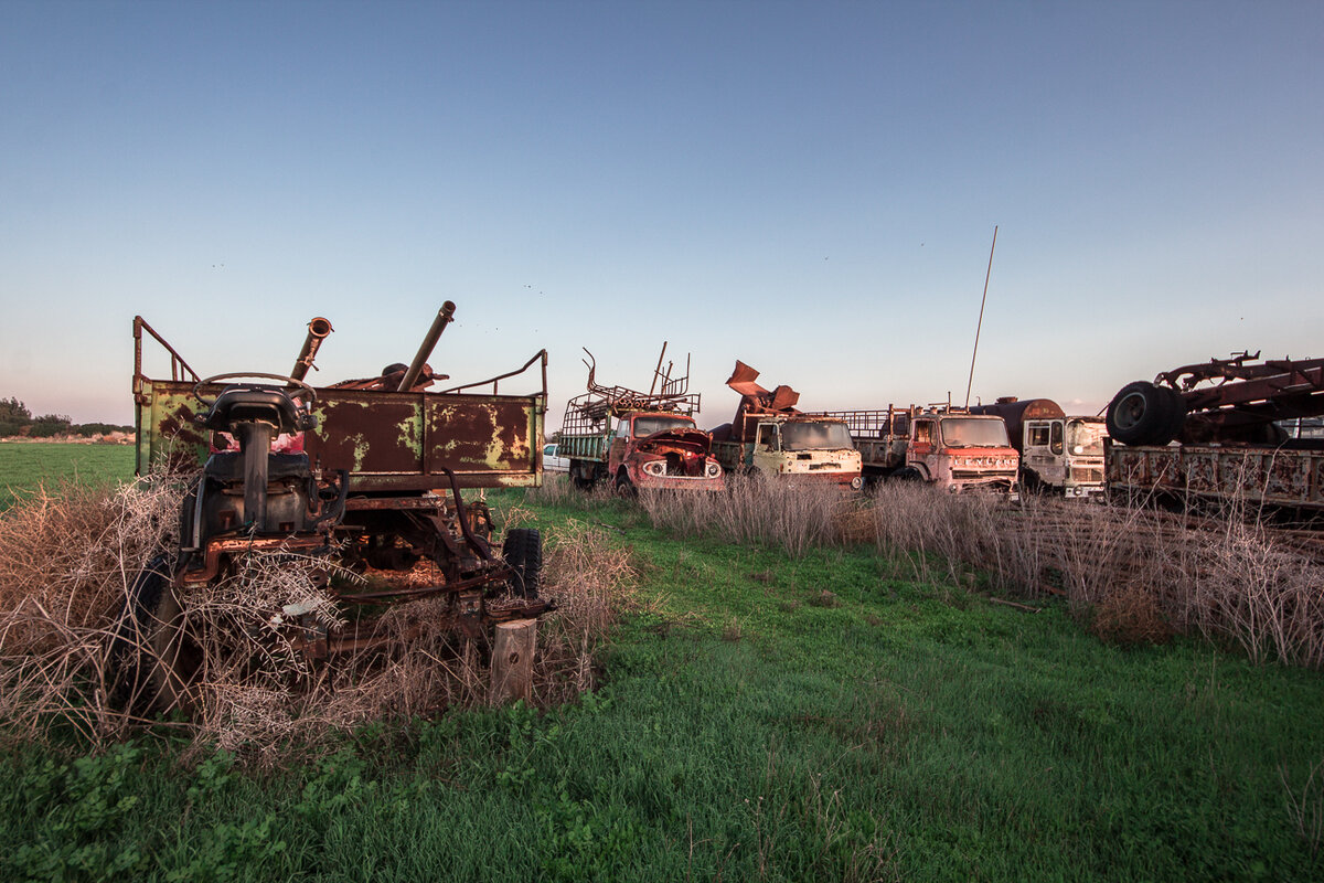 Эта впечатляющих размеров стоянка заброшенных грузовиков, была найдена нами по чистой случайности. Мы всего лишь хотели поехать поснимать издали индустриальные пейзажи, но случайно приметили вдалеке это место.