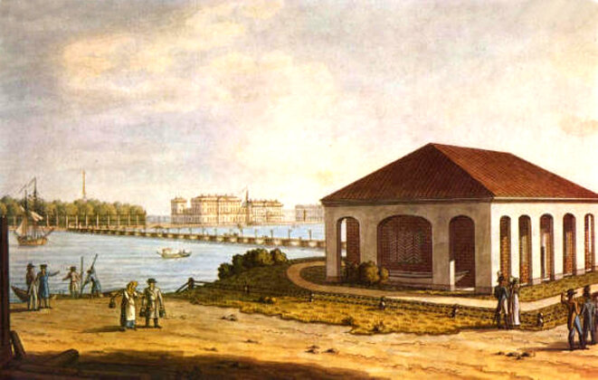 Первым жильцом городов на Неве стал его создатель - Петр Первый. Крошечный садик со столетними деревьями, расположенный на Петровской набережной, скрывает за своей зеленью небольшой домик из красного кирпича. Это своеобразный футляр, укрывающий первую городскую постройку для жилья. Строительство в рекордные сроки В 1703 году солдатам-плотникам поступил приказ - соорудить жилой дом для самого Петра. С 24по 26 мая шло интенсивное строительство. Дом был построен из необтесанных сосновых бревен. Уже 28 мая в новом жилище праздновали возвращение приневских земель. В документах того времени дом Петра I называется "дворцом" или "старыми красными хоромцами", где красные, значит, красивые. Красота домика отмечается неслучайно. Его размеры были весьма небольшими: всего 12 на 5,5 метров. Но это не мешало привлекать к себе внимание: расписанные под красный кирпич стены, ярко-бирюзовая крыша в виде черепицы. "Пылающие бомбы" и две мортиры на крыше служили дополнительным украшением. В широкие
