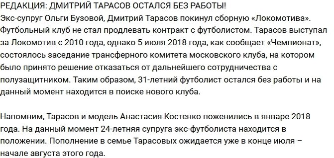 Блог Редакции: Бывший муж Ольги Бузовой остался без работы
