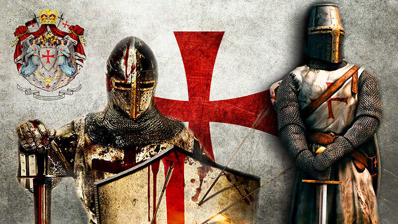 Тамплиеры - это военно-религиозный орден, основанный в 1119 году в Святой Земле для защиты паломников идущих в Иерусалим. Первоначально орден насчитывал не более 9 рыцарей во главе с Гуго де Пейном.Он стал вторым орденом после госпитальеров по времени основания. Орден был назван "Бедные рыцари Храма Соломона". Первоначально они были нищие и случалось так, что на двух человек приходилась только одна лошадь. В память об этом на их гербе достаточно долгое время была изображена лошадь, а на ней два всадника.