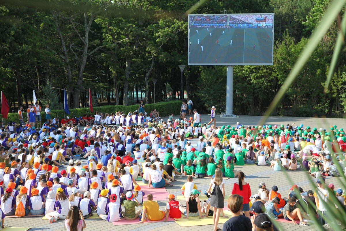 Ребята из Всероссийского детского центра «Орлёнок» болели за сборную России в матче Россия-Испания. Просмотр важнейшей игры для российской команды был организован на Звёздной площади, где собрались болельщики из всех лагерей. Настроение перед началом матча у всех орлят было боевое, каждый с трепетом надеялся на победу России и выход в четвертьфинал чемпионата мира. «Я с большой надеждой пришел сегодня наблюдать за игрой, также, как и мои друзья. Конечно, не стоит забывать о сильном противнике, но тем больше будет радость нашей победы! Уверен, что игра получится очень захватывающая и интересная», — поделился своими ожиданиями участник программы «Цифровое будущее России» из детского лагеря «Звёздный» Ярослав Елисеев (г. Шахты). Большой и дружной командой мальчишки и девчонки скандировали футбольные кричалки и поддерживали сборную России! Когда на 11-й минуте защитник сборной России Сергей Игнашевич поразил собственные ворота, орлята не думали отчаиваться. Уже на 41-й минуте Артем Дзюб