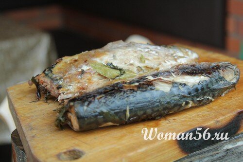 Запеченная в фольге скумбрия, приготовленная на мангале, довольно вкусное и пикантное блюдо. Для приготовления идеально подходит любая свежая или охлажденная скумбрия, но если вблизи нет рыбацкой артели, вполне сгодится замороженная. Тушка нужна средних размеров, примерно 400-600 гр.При выборе свежей и охлажденной рыбы следует осмотреть глаза и жабры. Глаза должны быть не мутными, а жабры розовыми и не поврежденными. Ингредиенты рецепта: Приготовление скумбрии в фольге - на мангале Предварительно вымытую рыбу следует выпотрошить, убрав внутренности и жабры, голову можно оставить или отрезать, это на ваше усмотрение и особо на конечный результат не повлияет. В данном рецепте, запекается скумбрия в фольге на мангале без головы. Бумажными полотенцами или салфеткой просушить, убрать пленку и остатки внутренностей. (Пленку старайтесь очистить как можно тщательней). По желанию, сразу после разделки скумбрии, многие кулинары, помимо лимонного сока сбрызгивают жирную рыбу белым