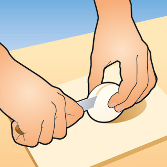 Глупо верить, что Интернет в современном мире может все. Ты видел, чтобы с помощью подключения к Wi-Fi картошка в оливье крошилась сама собой? Вот и мы только однажды. «Вообще-то мелкую нарезку для салатов правильно называть шинковкой», — с ходу поправила нас повар клуба-ресторана «Собрание» в московском саду «Эрмитаж» Людмила Смирнова. Шинковать мы решили картошку — для наглядности. 01 Разрежь картошку надвое, чтобы она устойчиво лежала на доске. (Если тебе достался клубень больших размеров, получи бонус.) 02 Затем половину картофелины разрежь вдоль (показано пунктиром). 03 Надежно прижми кончиками пальцев часть овоща к доске и шинкуй самым легким способом – с отрывом ножа от доски. Он наиболее безопасный, поскольку позволяет кромсать продукты на значительном расстоянии от пальцев. Нож, кстати, все время должен находиться на одном и том же месте, двигается (навстречу лезвию) исключительно продукт. 04 Когда нож дойдет до части картошки, находящейся под рукой, выпрями пальцы. 05 Поверни