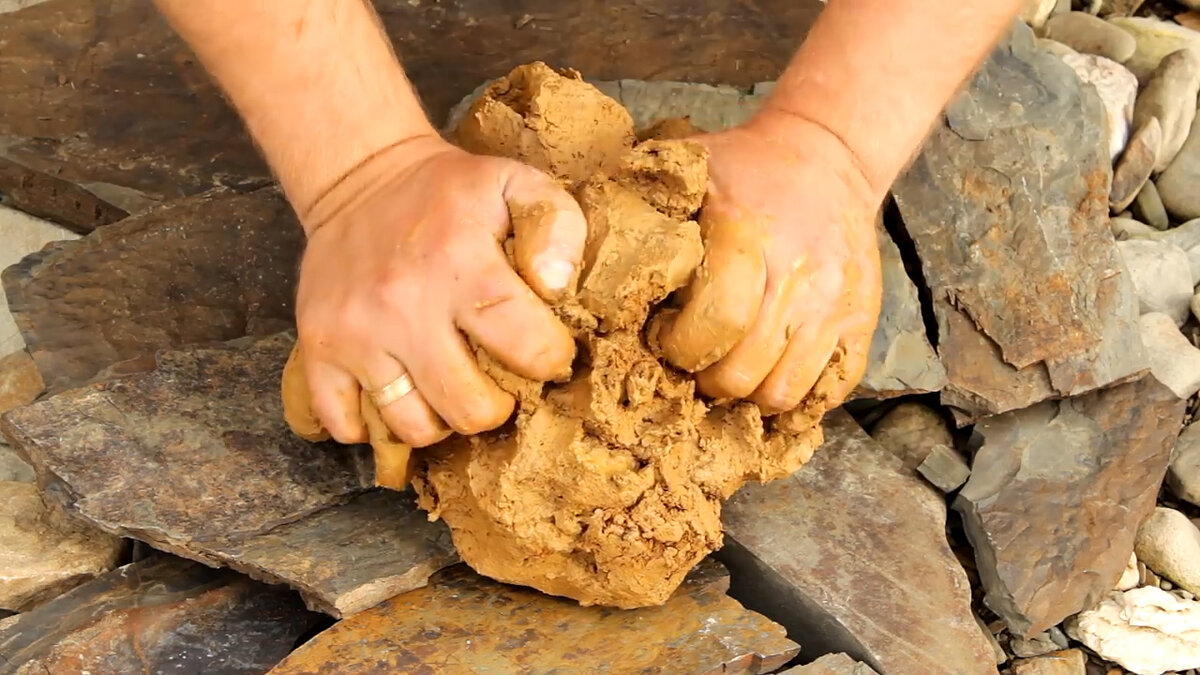 Превосходные вкусовые качества на основе природных экологических материалов, что может быть лучше для здорового питания и прекрасного отдыха!? Сегодня запечем щуку в глине. Это прекрасный материал, который снова набирает популярность. Работать с глиной необходимо на твердой и ровной поверхности. На природе для этих целей подойдут плоские камни из которых соберем импровизированную столешницу. Важно хорошенько подготовить глину для запекания. Разминаем ее, при этом удаляя мелкие камушки и попавший мусор. Это поможет избежать в ней глубоких трещин при запекании и сохранит сочность приготовленной рыбы. На практике выяснилось, что удобней всего выкладывать нужную поверхность небольшими лепешками из глины. Лепешка разминается руками до толщины в 1,5 - 2 см. Последовательно ими выкладывается нужная площадка. Эти лепешки накладываем краями друг на дружку, легко прижимаем для их соединения. Постепенно получается импровизированная противень. Избежать попадание мелких кусков глины в блюдо нам