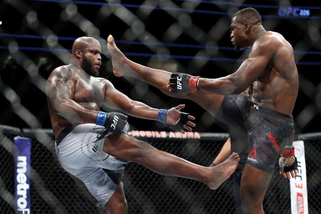 Самые легкие $ 100 000 в жизни Франсиса и Деррика Прошедший 7 июля на UFC 226 поединок между Франсисом Нганну и Дерриком Льюисом уже назван худшим боя года и одним из самых скучных в истории профессионального ММА. Два мощных и ярких ударника, по сути, провели бесконтактную 25 минутную прогулку по октагону. Статистика подтверждает общие наблюдения и фиксирует рекордно маленькое количество выброшенных ударов. Согласно приложению Fight Metric Нганну нанес за бой 11 ударов с нулевым процентом попаданий, Льюис же пробил 20 раз с одним точным попаданием в голову. Итого — 31 удар за бой и это второй антирекорд в истории промоушена. Для сравнения, в бою за титул — там же 7 июля в Вегасе — Кормье и Миочич всего за 4,5 минуты нанесли 60 ударов. Приводим статистику рекордно низких показателей ударов за бой в истории UFC. Наименьшее количество ударов в истории 3-раундовых боев в UFC 23 — Пулвер vs. Роке