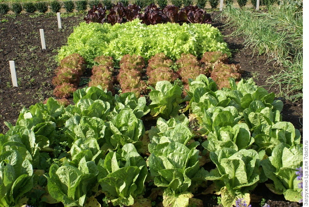 Салат ромэн. Его высевают в конце июля в посевные ящики, а в августе высаживают в грунт. Когда урожай поспеет, растения можно выкопать с корнями и прикопать в сырую землю в подвале. При температуре 1 — 5 °С они хорошо хранятся до полутора месяцев.