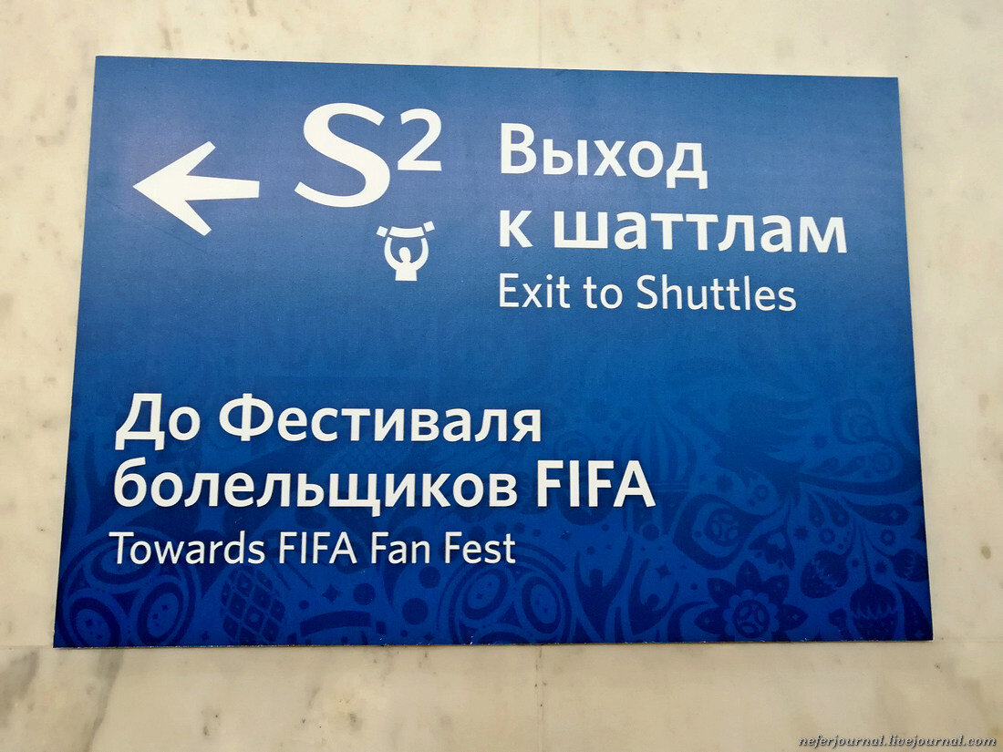 От станции метро Ленинский проспект курсируют бесплатные автобусы. На платформе есть указатель. На самом деле можно просто идти за разноцветными человечками в футбольной форме, придешь, куда надо :)