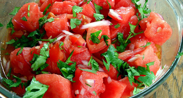 Яркий и в то же время нежный, насыщенный вкус салата «Вдохновение» никого не оставит равнодушным. Он станет самым лучшим угощением вашего стола, на какое бы мероприятие вы его ни приготовили. Никто не сможет удержаться! Приготовление: Сперва возьмём 2 томата и тщательно помоем в тёплой воде, а затем нарежем аккуратными небольшими кубиками или ломтиками. Твёрдый сыр, не более 100г, натрём на крупной тёрке и добавим в миску с помидорами. Затем шинкуем укропа, предварительно вымыв его, и дав лишней воде стечь с зелени. Одного пучка вполне хватит на салат. Крупно рвём листья салата, количество определяем по собственному вкусу, но я обычно беру 3 – 4 листа. Также нам понадобится 120г красной икры из морских водорослей с майонезом, которую можно купить в любом продуктовом. После того, как мы добавили икру к другим ингредиентам, немного солим по вкусу и тщательно перемешиваем. Кушать подано! Наслаждайтесь вкусом салата «Вдохновение» и комплиментами от гостей. ЕСЛИ ВАМ ПОНРАВИЛСЯ РЕЦЕПТ - СТА
