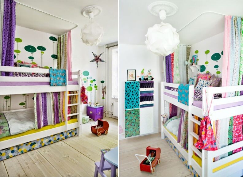 Обустройство детской комнаты не вызывает никаких проблем, если речь идёт про обитель для одного ребёнка. Ведь сразу становится ясно, какие стили дизайна являются преимущественными, какой тематике малыш отдаёт предпочтение и т. д. Но когда в доме предусмотрена лишь одна комната, в которой будет жить и мальчик и девочка, то появляются серьёзные трудности, которые задевают даже выбор цветовой гаммы, не говоря об общем дизайне и мебели. Основные нейтральные оттенки Разумеется, в общей комнате розовые и малиновые оттенки будут не уместны, т. к. не понравятся мальчику, а фотообои с машинами и человеком-пауком вряд ли припадут по душе девочке. Поэтому лучше обойтись классическими рисунками. Самыми приемлемыми цветами станут оттенки зелёного, синего, а также неплохо будут смотреться золотые и серебристые, но в сочетании с какой-нибудь другой палитрой, например, изумрудными полосами. Расстановка мебели Что касается мебели, то идеальным решение будет установка модульных конструкций, ко