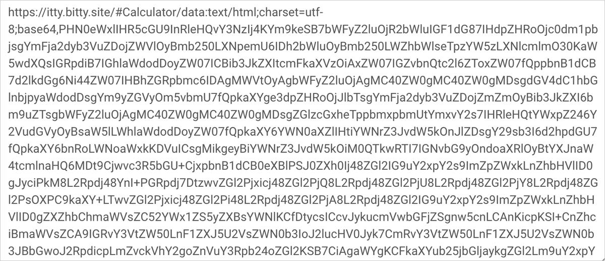 Любой сайт хранит всё своё содержимое на сервере в интернете, то есть на компьютере, который круглосуточно подключен к сети. Например, публикация, которую вы сейчас читаете, хранится на жестких дисках в дата-центре Яндекса. Но один из топ-менеджеров компании Dropbox разработал альтернативный способ хранения веб-страниц. Сервис Itty bitty предлагает закодировать содержимое сайта в его адресе. Проще говоря, сайт не будет храниться в интернете – достаточно передать ссылку, которая уже всё содержит. Itty bitty предлагает простой редактор для создания статей, но также поддерживает и более сложные сервисы. К примеру, вот ссылка на работающий калькулятор, который нигде физически не хранится. Исходный код этого калькулятор закодирован в формате base64 и передаётся в составе ссылки, которая выглядит так: Запомнить такую ссылку вряд ли кто сможет. Но вы можете, к примеру, хранить все созданные "сайты" в закладках Яндекс.Браузера.