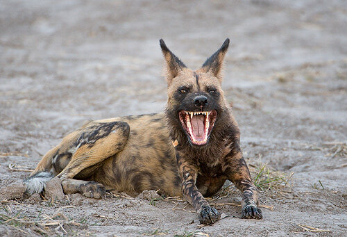 В дикой природе. Африканские дикая собаки ( Lycaon pictus ) чаще всего встречаются в Африке. Однако из-за конфликтов с деятельностью человека, болезнями и фрагментацией мест обитания их популяции снижаются. Африканские дикие собаки живут в стаях от 2 до 30 особей и обычно охотятся вместе, чтобы победить свою добычу. Они очень эффективные охотники; почти 80 процентов всех преследований заканчиваются пойманой добычей. Обычно они предпочитают животных среднего размера, таких как антилопа, но иногда они охотятся на более крупную добычу, такую как зебры, гну и даже страусы! Хотя они страшные хищники, они также имеют более мягкую сторону и образуют крепкие связки в которых едят, играют и спят вместе. Их социальная иерархия основана на подчиненном поведении, а не на агрессивном поведении, и поэтому они редко агрессивны друг с другом. В стае только альфа-пара размножается, и вся стая помогает поднять щенков. Щенкам даже дают преимущество после успешной охоты щенки едят в первую о