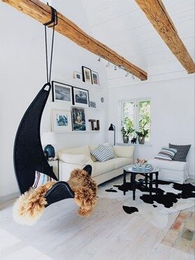 Одной из самых стоящих в истории дизайна интерьера была идея подвесить кресло к потолку: из обычной мебели для сидения подвесное кресло превратилось в мечту любого, кто любит качели, гамаки и обожает отдыхать дома. Итак, сегодня наша фото-подборка посвящена подвесным креслам в интерьере квартиры! Модель кресла, которую вы выберете в ваш интерьер, будет зависеть от стилистики и функций, которые вам подходят. Например, многим нравится кресло-яйцо, закрывающее сидящего от посторонних взглядов, но кто-то посчитает, что это неуютно — и предпочтет прозрачное или плетеное кресло. Подвесное кресло можно использовать и в детской, и в спальне для взрослых. Если расположить его в гостиной у окна, можно устроить таким образом уголок для чтения. Такое решение будет актуальным, если квартира небольшая и приходится объединять функции нескольких помещений в одной комнате. Конечно, подвесное кресло заставляет нас думать о безопасности: убедитесь предварительно, что материал, в который будет вмонтирован
