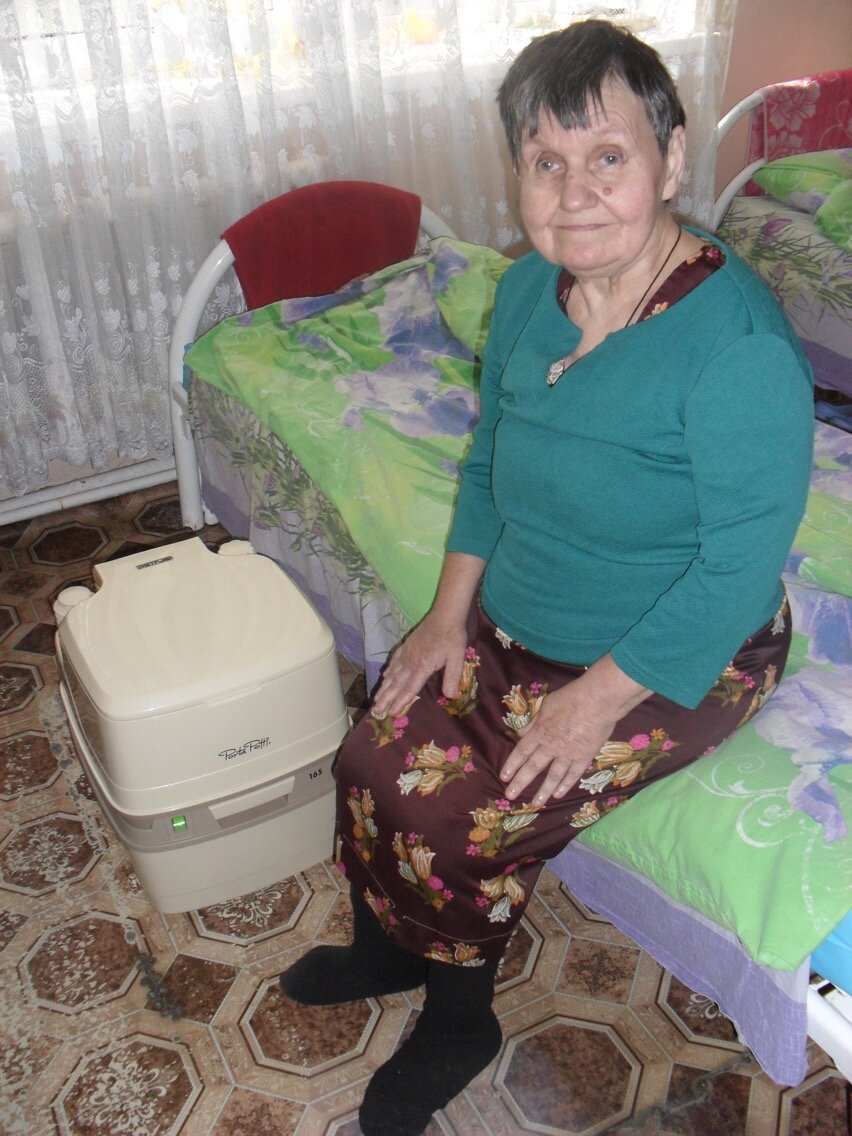 В корпусе милосердия Березовского психоневрологического интерната Свердловской области теперь у тех десятерых пациентов, кто может жить без подгузников, но не может добираться до туалета за пределами палаты, есть устойчивые и удобные биотуалеты прямо в комнатах. Не пахнет, нет риска опрокинуть, расплескать, нянечкам легче - не нужно много раз в день все мыть. Не сравнить с общераспространённой конструкцией типа «ведро с крышкой». Нянечки и пациенты уже привыкли - к хорошему быстро привыкаешь. Спасибо каждому, кто принял участие в увеличении комфорта для пожилых постояльцев Березовского психоневрологического интерната! Теперь вы можете помочь другим пожилым людям здесь.