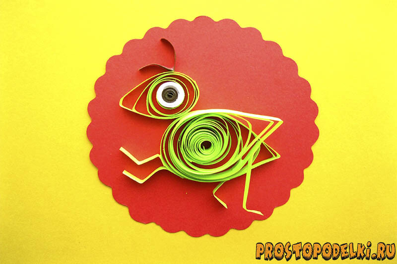 Зеленый кузнечик упоминается во многих сказках. Поэтому такого насекомого с интересным строением туловища невозможно не сделать в технике квиллинг из бумажных полосочек. Голова и туловище с крылышками кузнечика будут сделаны из базовой формы квиллинга – капли, а вот остальные элементы просто будут сгибаться в нужных места и подкручиватся при необходимости. При изготовлении данной поделки также следует правильно сочетать цвета. Необходимые материалы: Этапы изготовления кузнечика в технике квиллинг: Для создания основной части туловища кузнечика следует взять две зеленые полосочки и соединить их концы клеем. Далее наматываем плотно в ролл на специальном инструменте для квиллинга. Снимаем и помещаем в трафарет-линейку, где номер ячейки будет 27. Также берем еще две полоски зеленого цвета, скрепляем вместе и готовый ролл размещаем в отверстие линейки, где диаметр составляет 25 мм. Наносим клей на концы роллов. Закрепляем. Вынимаем с трафарета-линейки и получаем две базовые формы в квиллинг
