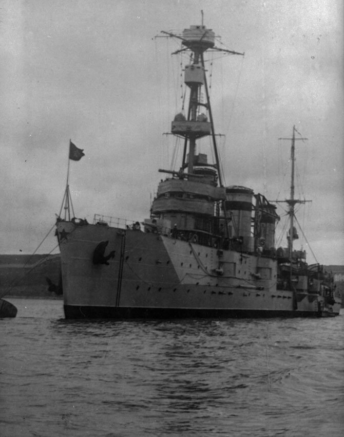 Фото сделано ещё в бытность крейсера "Профинтерном". Очень чётко видно по отсутствию башенноподобных щитов 100-мм зениток итальянского происхождения "Минизини" - одна из них была поставлена на баке крейсера и её отсутствие прекрасно видно на фото.