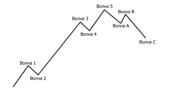 Волновая теория Эллиота — немножко истории Волновую теорию разработал Ральф Эллиот, о которой мир узнал из монографии «Принципы волн» в 1938 году. Сам автор на ней сравнительно ничего не заработал (насколько я знаю, он умер в нищете). А кто сделал на ней колоссальных масштабов бизнес, так это рок-музыкант и просто хороший человек Р. Пречтер. Основываясь на волновой теории Эллиота, Пречтер предсказал в конце 70-ых XX века биржевой бум 1982-го и крах 1987-го. Но далее с прогнозами как-то не срослось. Поэтому я рассматриваю волны Эллиота только, как концепцию движения различных рынков, но никак с целью прогнозирования. Теперь давайте все же рассмотрим основные положения волновой теории Эллоита. Определение волн Эллиота Волны Эллиота – это торговая модель, которая показывает, как движутся рынки. Каждый тренд, независимо восходящий или нисходящий, имеет фазы стремительного движения и коррекции (откатов), что и есть основой волновой теории (что такое откаты и как их торговать). Для свинг