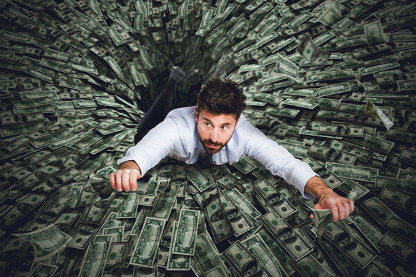 Бедный человек сначала переживает, что денег не было. А когда деньги появились и много, то начинаются новые переживания - а вдруг их украдут, отнимут представители гос органов или бандиты, так ведь еще и налоги огромные нужно еще заплатить. А в результате девальвация и снова паника.