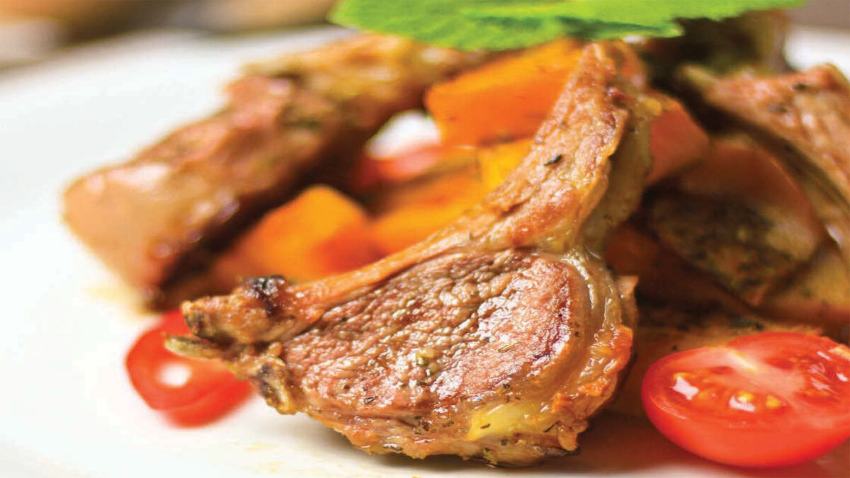 Рецепт быстрого приготовления на обед бараньих котлет с запеченной тыквой. Для тех, кому тыква не нравится, её можно заменить на запечённый картофель: нарезать его кружечками, немного смазать маслом, слегка присыпать розмарином и запечь. Мясо можно замариновать накануне. Рецепт рассчитан на 2 порции, время приготовления 45 минут + 15 минут на маринование. Рецепт