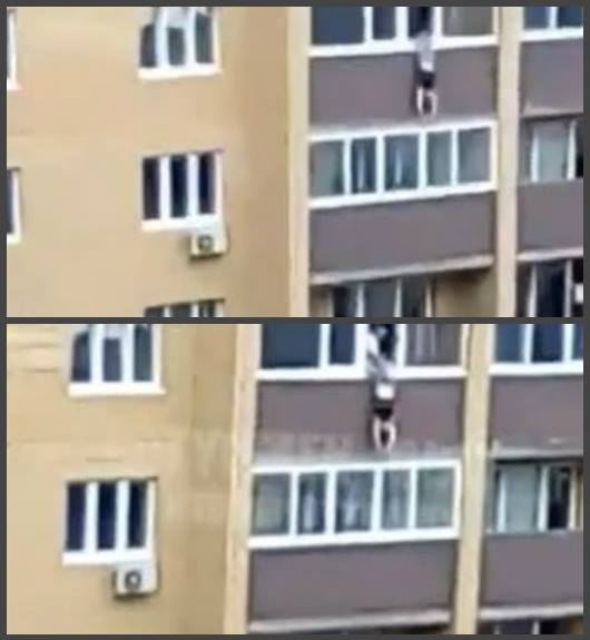 Полнейшую жесть наблюдали жители микрорайона Войновка накануне. Странная женщина висела на балконе вниз головой в течение 2-х минут. Она не издавала никаких звуков, через некоторое время ее занесли домой в квартиру. Официальных комментариев служб не последовало, ясно, что женщина была немного не в себе.