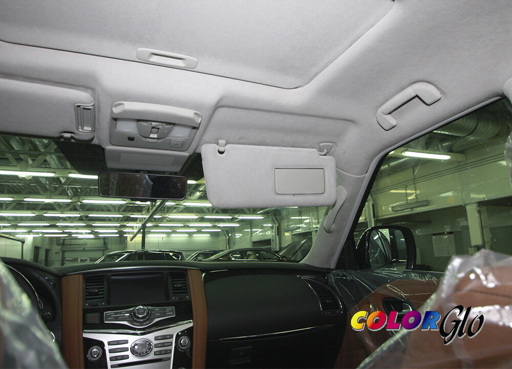 Перетяжка салона автомобиля INFINITI QX80 - алькантара цвет серый (арт. 4978) и покраска потолочного пластика. Премиальная перетяжка алькантарой поднимает статус владельца авто и создает в салоне уют. Ощущение изысканности и элегантности салона всегда будет сопровождать вас и ваших попутчиков. Автоателье компании Color Glo Russia работает напрямую с производителями, поэтому мы предлагаем заказчику продукцию, что называется, из первых рук и в полной цветовой гамме. Супертонкие волокна, составляющие структуру алькантары, делают ткань супердышащей, что согласитесь, важно для комфорта в салоне как зимой, так и летом. Алькантара более эластична, чем кожа, что позволяет перетягивать изделия сложной формы и работать с миниатюрными объектами. Наши мастера филигранно владеют всеми секретами раскройки, умеют быстро и аккуратно преобразить салон автомобиля. Кстати, для тюнинга салона используется специальный клей, который не оставляет после себя никаких запахов и неприятных ощущений. Как ухажива