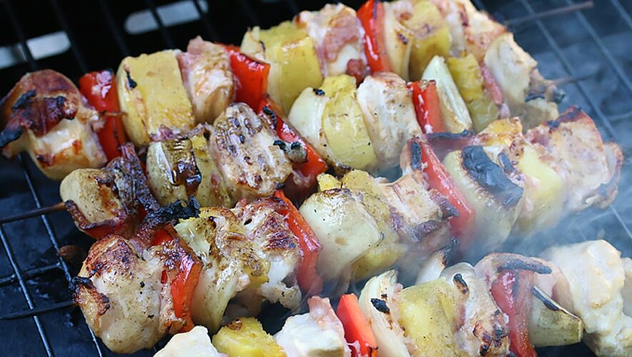 Всем доброго время суток!!! Сегодня мы приготовим не обычный шашлык. Это куриная грудка с ананасом. Для этого блюда нам понадобится : Куриная грудка Соль – по вкусу Перец молотый – по вкусу Ананасы консервированные в кольцах – 1 банка Чеснок – 1 зубчик Сметана или майонез – 4 столовых ложки Кетчуп – 2 столовых ложки Приправы (для шашлыка или для курицы) – по вкусу Итак начнем. Нарезаем куриную грудку кусочками среднего размера. Я например люблю, чтобы они были большими.)))) Выкладываем в глубокую миску. Отдельно смешиваем сметану (или майонез), кетчуп и немного сиропа от ананасов. Маринад солим, перчим, добавляем специи, выдавливаем чеснок и хорошо вымешиваем до однородной массы. Полученным маринадом заливаем куриную грудку и хорошо перемешиваем. Оставляем мариноваться на 2-3 часа. Ананасы достаем из банки и оставляем немного обсохнуть. Замаринованный шашлык еще раз перемешиваем и начинаем нанизывать на шампура. Чередуем кусочки куриной грудки с кружками ананаса. Размещаем наш шашл