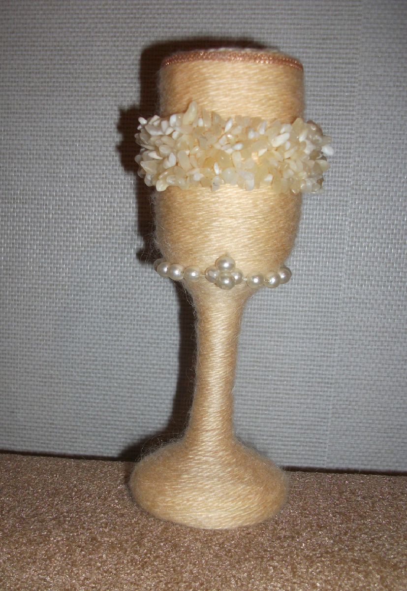 Как талантливые скульпторы создают Шедевры .... Фужер - из мозаики и ангорской козы . Создано руками Анюты Петиной . Однажды я убиралась в шкафу - и собрала очень много ненужного .. Перебрав , отложив что-то и что-то оставив , приготовила кучу мусора . Вдруг решила , не выбрасывать мусор а сделать красивый фужер .. Нарвала мелко журналы : и из этой бумаги сделала красивый фужер . Долго ,долго оклеивала , собирая ножку потом сам верх фужера . Когда я полностью вывела очень красивый и ровный край - плавно подклеивая мелкие кусочки бумаги - поняла что наконец-то он практически готов . Нашла остатки пряжи ангорской козы и обернула фужер этой пряжей . В ИТОГЕ : получился очень красивый и изящный фужер . Обернув старой золотой цепочкой и браслетом с руки из натуральных камней с уральских гор . Я долго любовалась им и так и не отдала некому . Мне очень понравился - его красивый неповторимый вид . Личная статья Редактора . Принимайте участие в