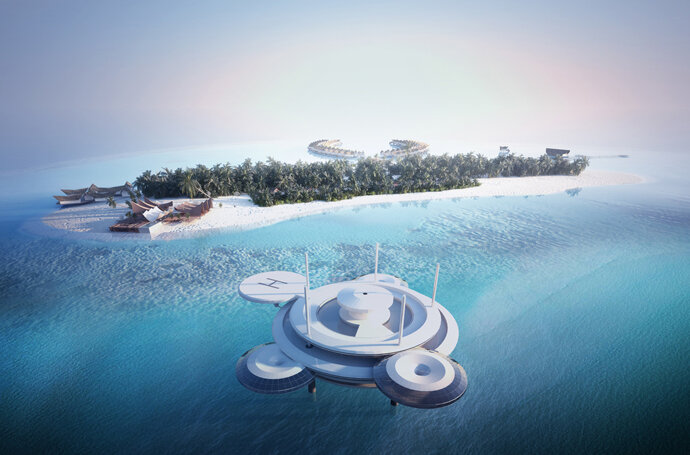 6 июня текущего года компания Deep Ocean Technology и гостиничная группа Ridgewood Hotels and Suites Pvt. Ltd подписали соглашение о купли-продажи первого в мире подводного отеля Water Discus Underwater Hotel. Расположенный посреди океана, в кристально чистой воде, уникальный подводный гостиничный комплекс будет состоять из апартаментов под водой и над ней. Первые предназначены для тех гостей, которые желают увидеть морской мир своими глазами, увидеть тропических рыб и живые коралловые рифы. Вторые же позволят наслаждаться видом на окрестности островного участка. Строительство подводного отеля, несомненно, представляет собой идеальную возможность для расширения спектра туристических услуг на острове и повышения авторитета курорта на местном рынке. На верхней части отеля разместятся ресторан, спа-центр, бассейн на крыше с морской водой, тропический сад, а также вертолетная площадка. Нижняя "палуба", которая опущена на 30 метров ниже поверхности моря вместит 21 звуконепроницаемый н