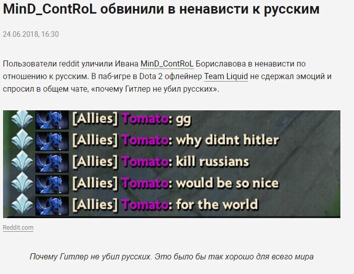 Поймите правильно, как бы сильно не рейджил во время игры медийный игрок, он осознает, что за его жизнью и его играми следят орды фанатов. Майнд контрол (кстати переводится как «контроль над разумом») даже если писал такое на эмоциях прекрасно знал о последствиях.