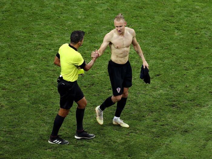В сети интернета началась массовая травля арбитра, судившего матч Россия-Хорватия. Ключевым моментом четвертьфинального матча ЧМ-2018 стал гол защитника Хорватии Домагоя Вида. Радостный хорват, сорвав с себя майку, бежит в сторону своей скамейке запасных. По современным правилам футбола за оголенный торс футболисту автоматически полагается желтая карточка. Арбитр подходит к Виде, достает из трусов «горчичник», что-то записывает, но не поднимает карточку над головой. Вместо этого он просто жмет руку хорвату. Спустя несколько минут Домагой Вида нарушает правила на правом фланге своей обороны – сшибает российского игрока с ног, срывая перспективную атаку. Судья уверенно бежит к месту происшествия, копается в кармане и показывает Виде, казалось бы уже вторую, желтую карточку, что означало автоматическое удаление. Однако Вида спокойно бежит в собственную штрафную оборонять ворота. Судья не обращает на это никакого внимания. Удаления нет. У болельщиков всей страны возникает только один во