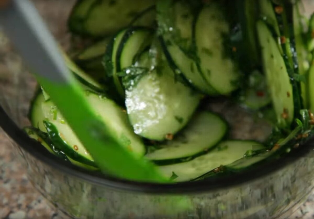 Этот витаминный легкий салатик из свежих огурчиков готовится довольно быстро, поэтому его можно включить в повседневное меню.