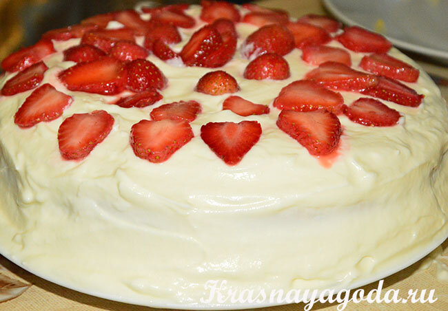 Бисквитный торт с клубникой в мультиварке