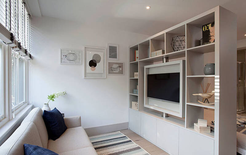 Они все до 35 квадратных метров, но с высокими потолками, которые позволяют строить вверх, эти маленькие жилые помещения обладают достаточными функциями и функциональностью. 1 Этот крошечный студийный проект в Великобритании имеет пространства, расположенные вокруг книжного шкафа в качестве разделителя комнаты. Он отделяет спальню от дивана и кухни, а центральная панель поворачивается для отображения телевизора с плоским экраном с обеих сторон. 2 Очень крутая и стильная студия, в малом пространстве которой содержится функционал целого дома 3. Архитектор Рик Джой создал сексуальную нью-йоркскую студию, где постель может быть покрыта льняными занавесками. Хотя пространство мало, отделки имеют самое высокое качество, что дает крошечной студии роскошь. 4. Спальная область отделена от остальной части помещения шкафом. Интегрированное освещение, высококачественные полы и приборы из нержавеющей стали создают легкое пространство. 5. Самая крутая особенность студии - книжный шкаф, который являе