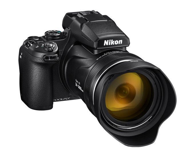 COOLPIX P1000 задуман в качестве бюджетного и универсального инструмента, с помощью которого можно снимать всё, лунные пейзажи и диких зверей на полном зуме или пейзажи на широком угле, благодаря светосильному объективу с диапазоном фокусных расстояний от 24 до 3000 мм. За счет применения в объективе фирменных технологий, компании Nikon удалось снизить уровень искажений и делать резкие снимки даже на максимально больших фокусных расстояниях. Использование цифрового зума Dynamic Fine Zoom позволяет увеличить фокусное расстояние с 3000 мм до 6000 мм и превратить камеру в настоящий телескоп. Матрица разрешением 16 МП. Камера поддерживает RAW-формат и позволяет фотографам сохранять несжатые файлы, а также вести видеосъемку в 4K/UHD...